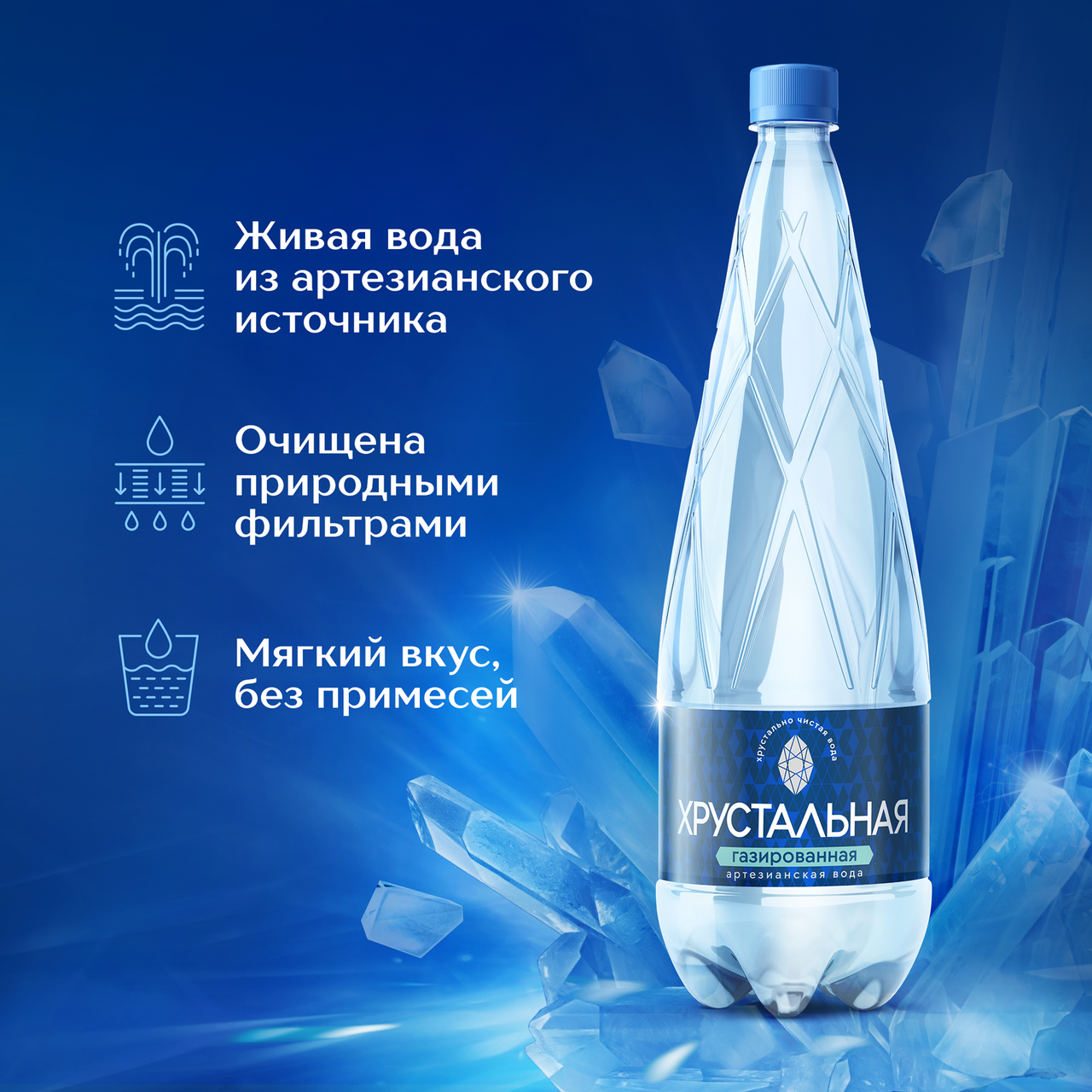 Вода Хрустальная газированная, 1.5л x 6 шт - это не просто питьевая вода, а эстетичное и утонченное решение для повседневной заботы о вашем здоровье. Это высококачественная питьевая природная вода, прошедшая специальную очистку, чтобы предложить вам идеальный мягкий вкус и полезные свойства. Это слабоминерализованная вода с низким уровнем жесткости 0,2-0,4мг/экв/л, что дарит ей особую мягкость. В процессе добычи вода из скважины проходит через сложную систему фильтрации от предварительной очистки, при которой происходит удаление грубых примесей. Благодаря этому достигается необходимая чистота, прозрачность и вкус продукции.