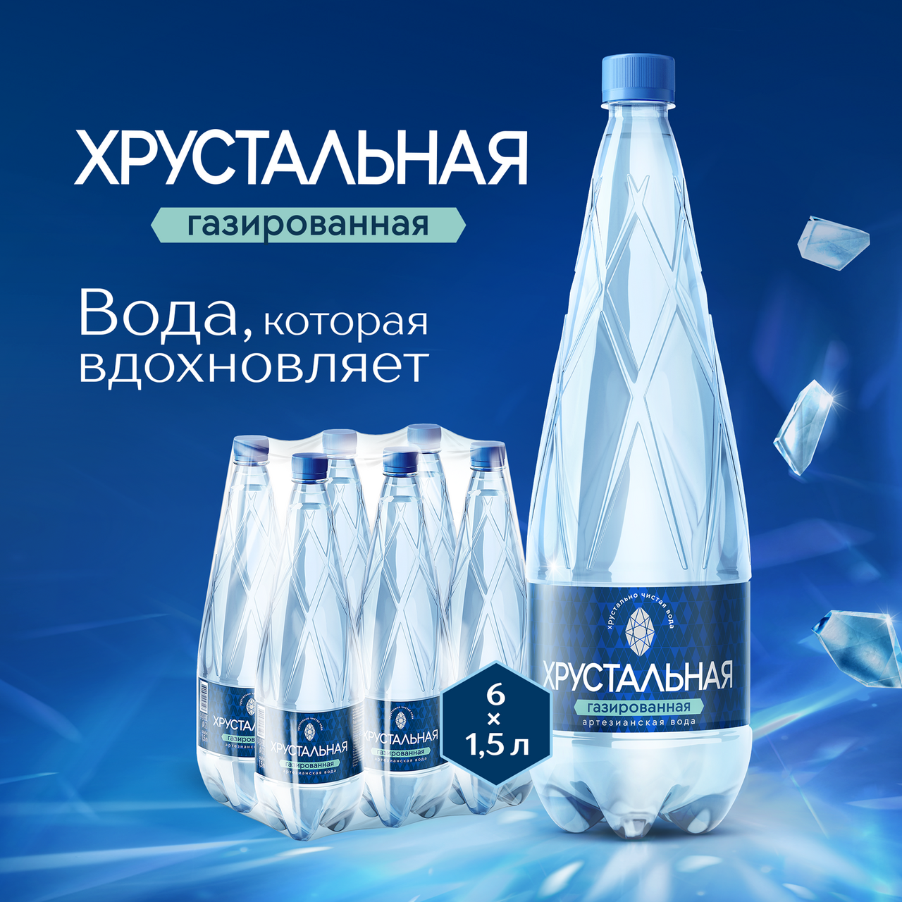 Вода Хрустальная газированная, 1.5л x 6 шт