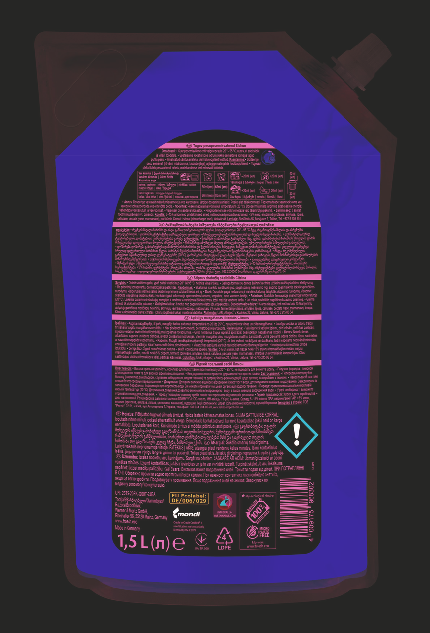 Новая формула Ультра концентрат - меньше дозировка, больше стирок. Экологичное средство предназначено для стирки всех видов ткани, кроме шерсти и шелка. Идеально для белого белья. Улучшенная формула с энзимами еще эффективнее удаляет загрязнения и выводит пятна при температуре 20-95С. Экономично в использовании благодаря концентрированной формуле. Инновационная Mondi упаковка полностью пригодна к переработке вместе с крышкой.