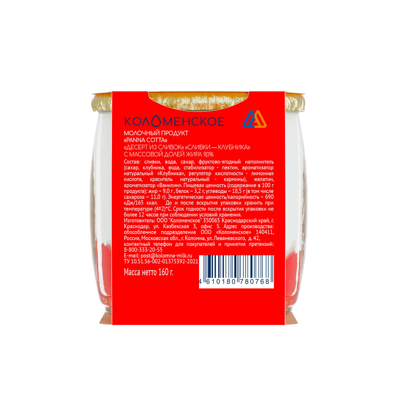 Молочный продукт Коломенское Десерт из сливок Panna Сotta Сливки-клубника 9%, 160г