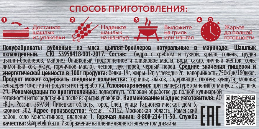 Шашлык куриный Петелинка охлажденный, ~1.6кг