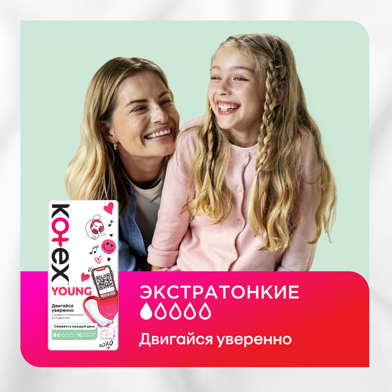 Прокладки ежедневные Kotex Young Экстра тонкие для девочек, 16шт