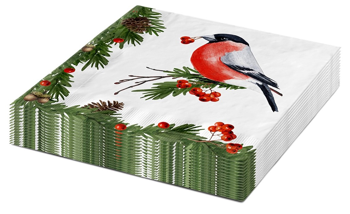 Салфетки бумажные Fiolento Зима снегирь двуслойные 16.5см, 16шт