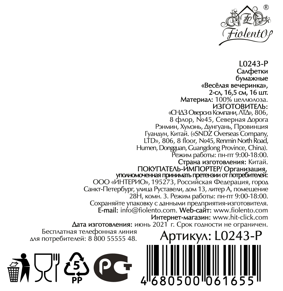 Салфетки бумажные Fiolento Веселая вечеринка двуслойные 16.5см, 16шт