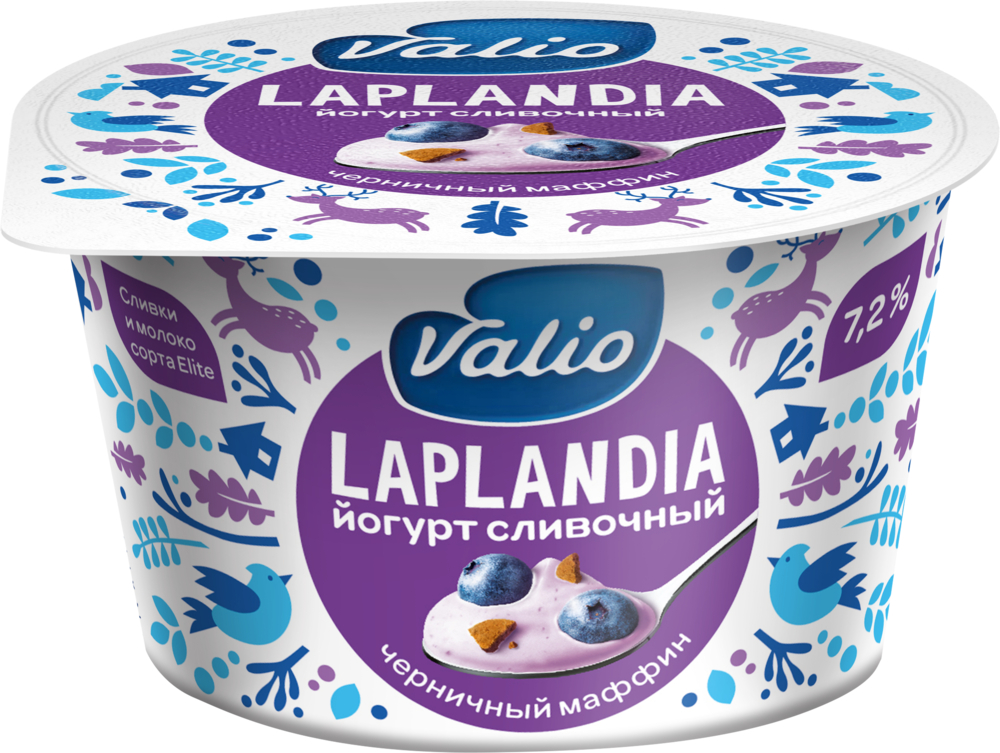 Йогурт Valio Laplandia с наполнителем черничный маффин сливочный 7.2%, 180г