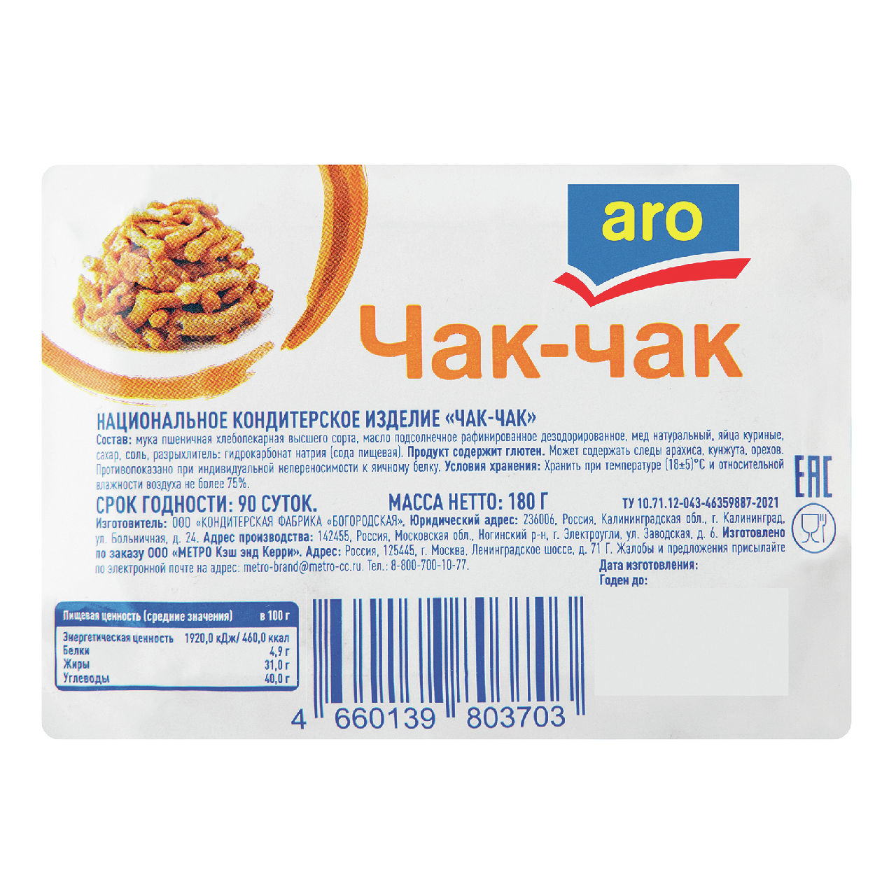 Чак-Чак Aro - это истинное восточное лакомство, вкус которого знает каждый сладкоежка. Нежное, рассыпчатое тесто, по форме напоминающее небольшие макароны, густо залито медовой глазурью и обсыпано кунжутными семечками. Лакомство отлично сочетается с любыми напитками: чаем, кофе, киселем, соком, молоком. Его можно купить домой для вечернего чаепития или на работу в качестве дополнения к обеду или для полдника.