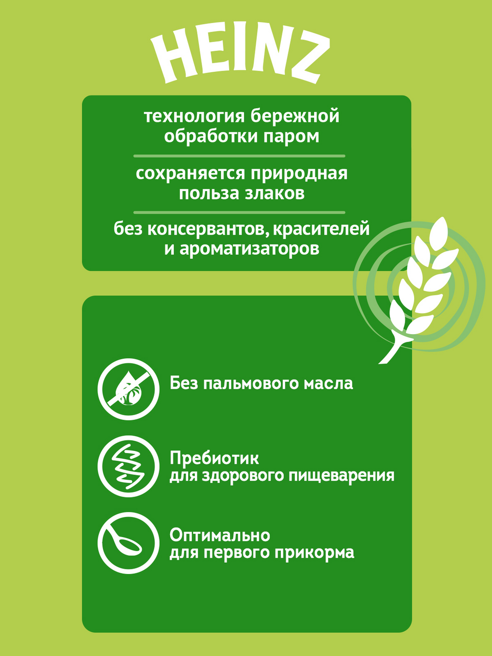 Детские молочные гречневые каши Heinz имеют абсолютно чистую рецептуру, поэтому идеально подходит для начала прикорма. Продукт произведен из безглютеновых круп и имеет сбалансированный состав, разработанный с учетом потребностей малышей до года. Гречневая каша — источник легкоусвояемых растительных белков, которые участвуют в формировании мышц. Сложные углеводы дают ребенку необходимую энергию для нормального развития, а клетчатка стимулирует пищеварение. Молочные каши Heinz обогащены пребиотиками, стимулирующими рост полезной кишечной микрофлоры, и имеют высокую питательную ценность.