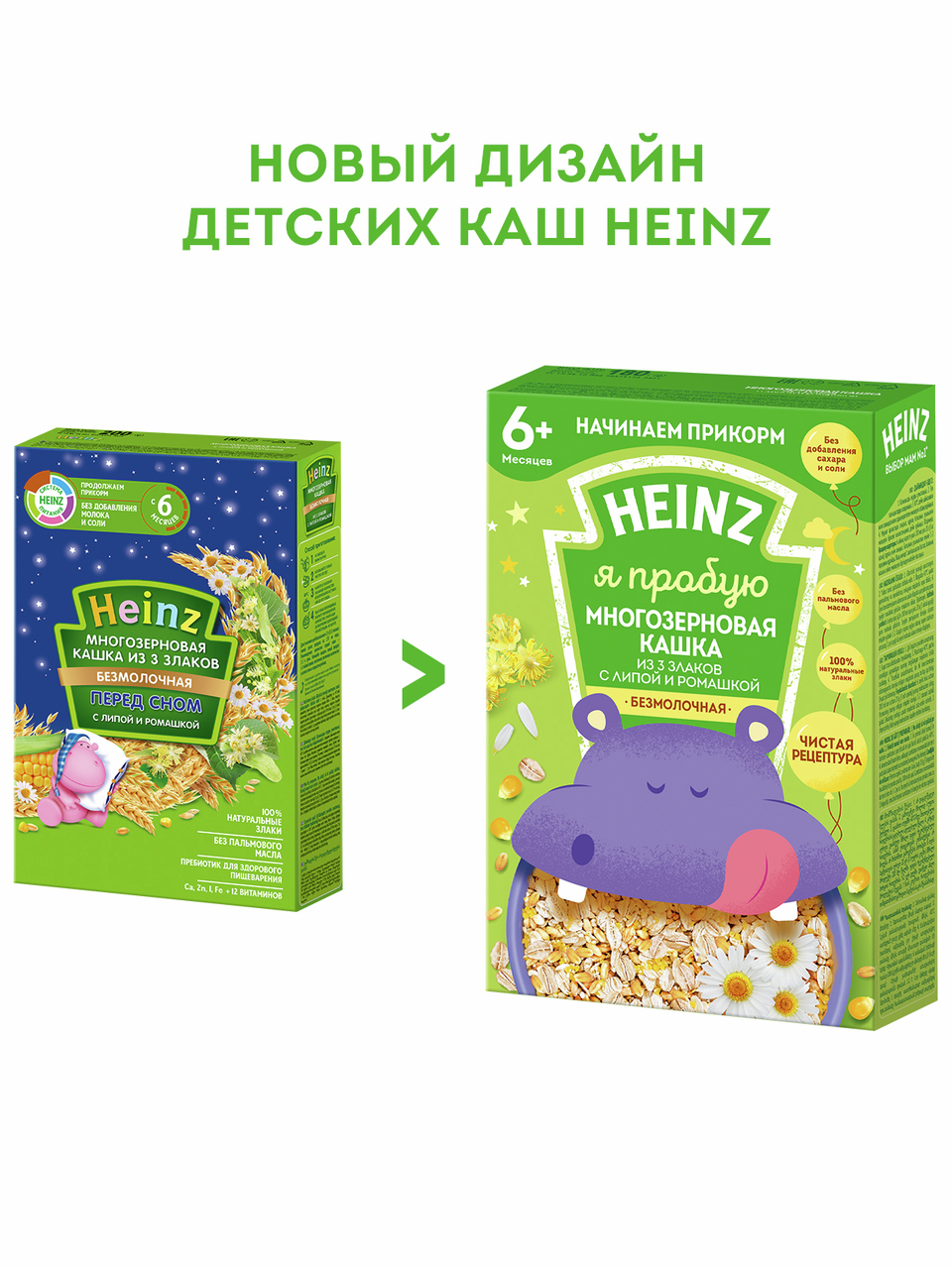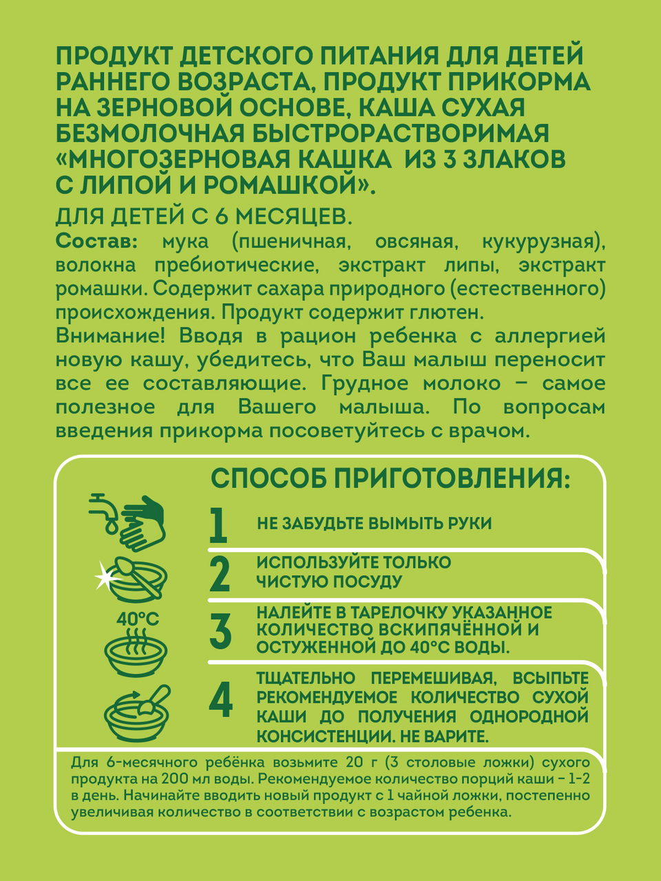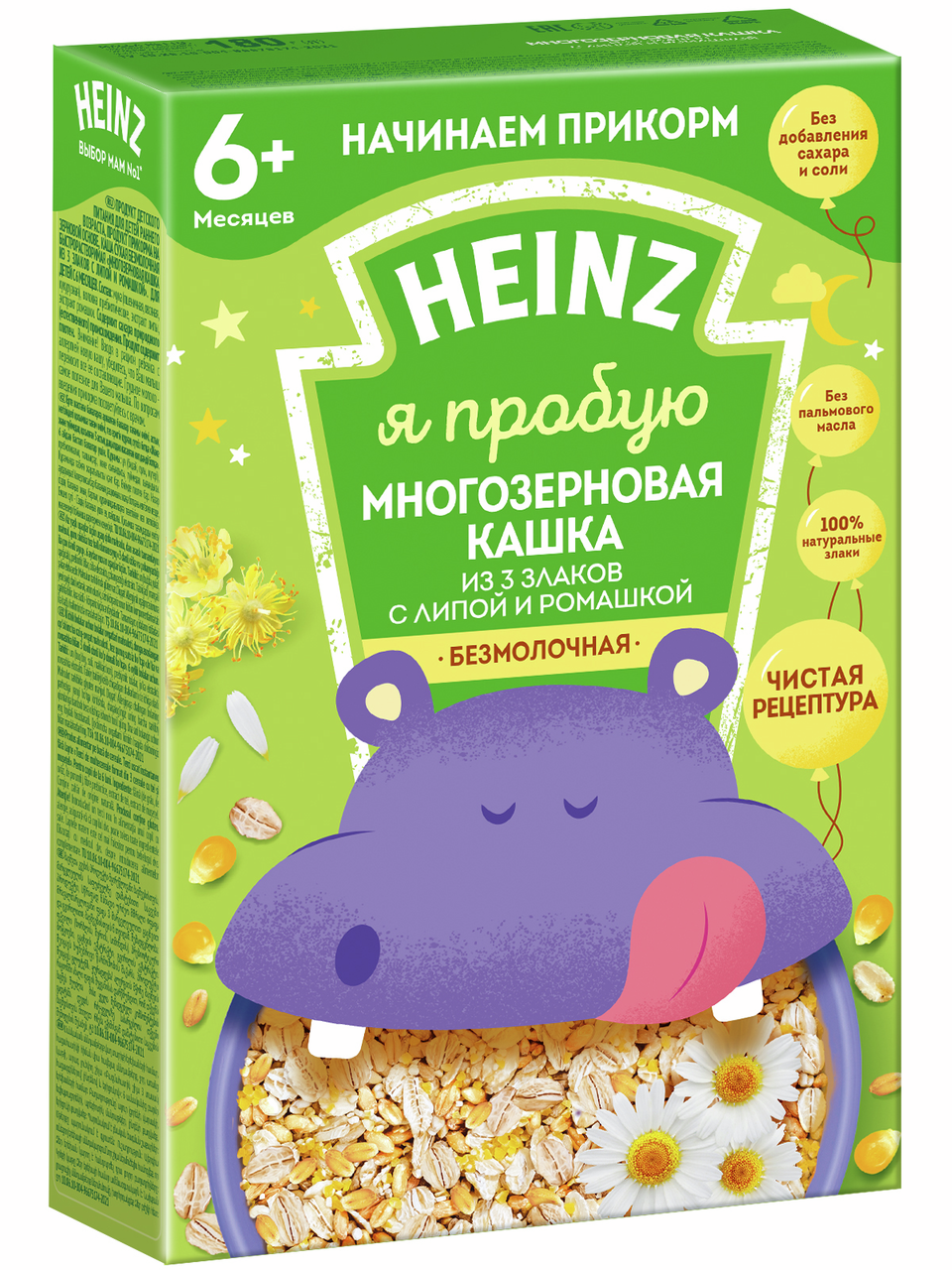 Каша безмолочная детская Heinz Многозерновая Липа и ромашка с 6 месяцев, 180г