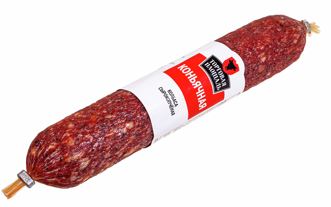 Торговая площадь Коньячная изготавливается по классической технологии исключительно из свинины. Благодаря добавлению коньяка в процессе созревания колбаса приобретает особый благородный мясной вкус и аромат. Отлично подходит для праздничной нарезки.