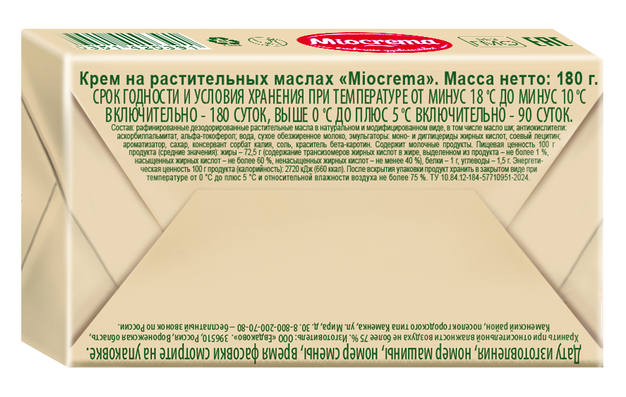 Крем Miocrema на растительных маслах 72.5%, 180г