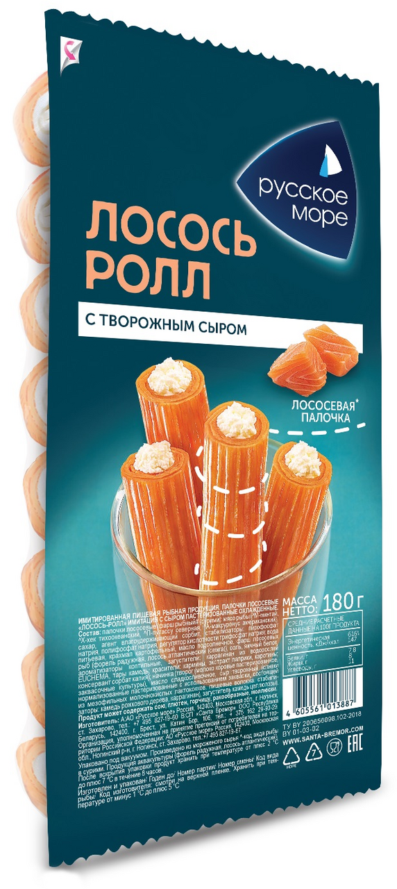 Лосось-ролл Русское море с творожным сыром, 180г