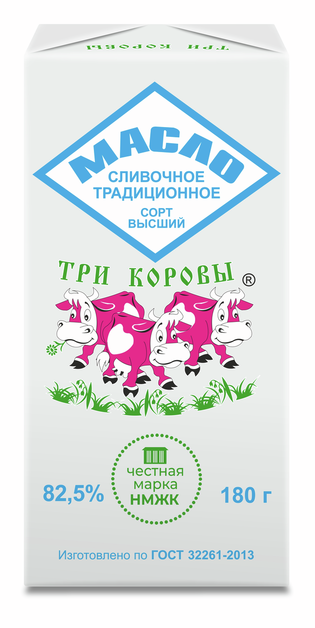 Масло сливочное Три коровы Традиционное ГОСТ 82.5%, 180г