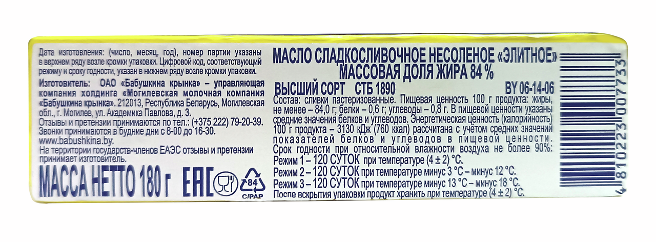 Масло сливочное Бабушкина крынка Элитное 84%, 180г
