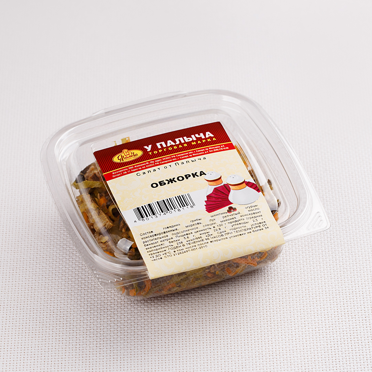 Салат Обжорка От Палыча, 180г — изысканное блюдо, которое не требует дополнительной подготовки и полностью готово к употреблению. Оно упаковано в пластиковый контейнер с герметичной крышкой, благодаря чему его удобно брать с собой на работу, на учебу или в дорогу в качестве перекуса. Также такой салат выручит вас, если у вас нет времени на готовку, например, если к вам неожиданно придут гости.Это сытный мясной салата, основу которого составляет отварная говядина, нарезанная на тонкие кусочки. Гармонично дополняют вкус мяса обжаренные шампиньоны, хрустящие консервированные огурцы, свежая морковь, репчатый лук, соль и специи, а также майонезная заправка. Такое блюдо принято подавать на стол в паре с черным хлебом. Порция салата быстро утоляет голод и дарит долгое чувство насыщения. Его калорийность составляет 238 ккал. Это сбалансированное блюдо — в 100 г содержится 5,6 г белка, 22,8 г жиров и 2,5 г углеводов. Представленный продукт готовят без добавления красителей, ароматизаторов, усилителей вкуса и запаха и ГМО. Хранить его следует в холодильнике не более 5 суток. Приобрести салат Обжорка От Палыча, 180г можно в торговом центре METRO.30 лет назад началась история компании У Палыча. Торговая марка производит и продает порядка 1400 наименований вкусных и по-настоящему качественных продуктов питания. Продукция бренда поставляется в Центральный, Приволжский, Северо-Западный и Южный федеральный округ. Два мощных производственных комплекса в Самаре и Москве выпускают фирменные продукты У Палыча.
