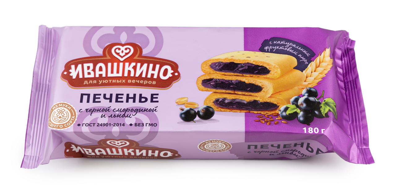 Печенье сдобное Ивашкино с черной смородиной и льном, 180г
