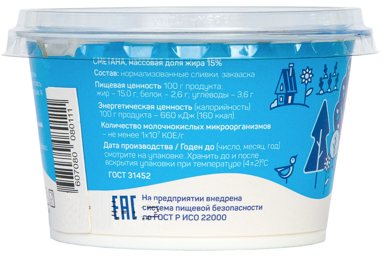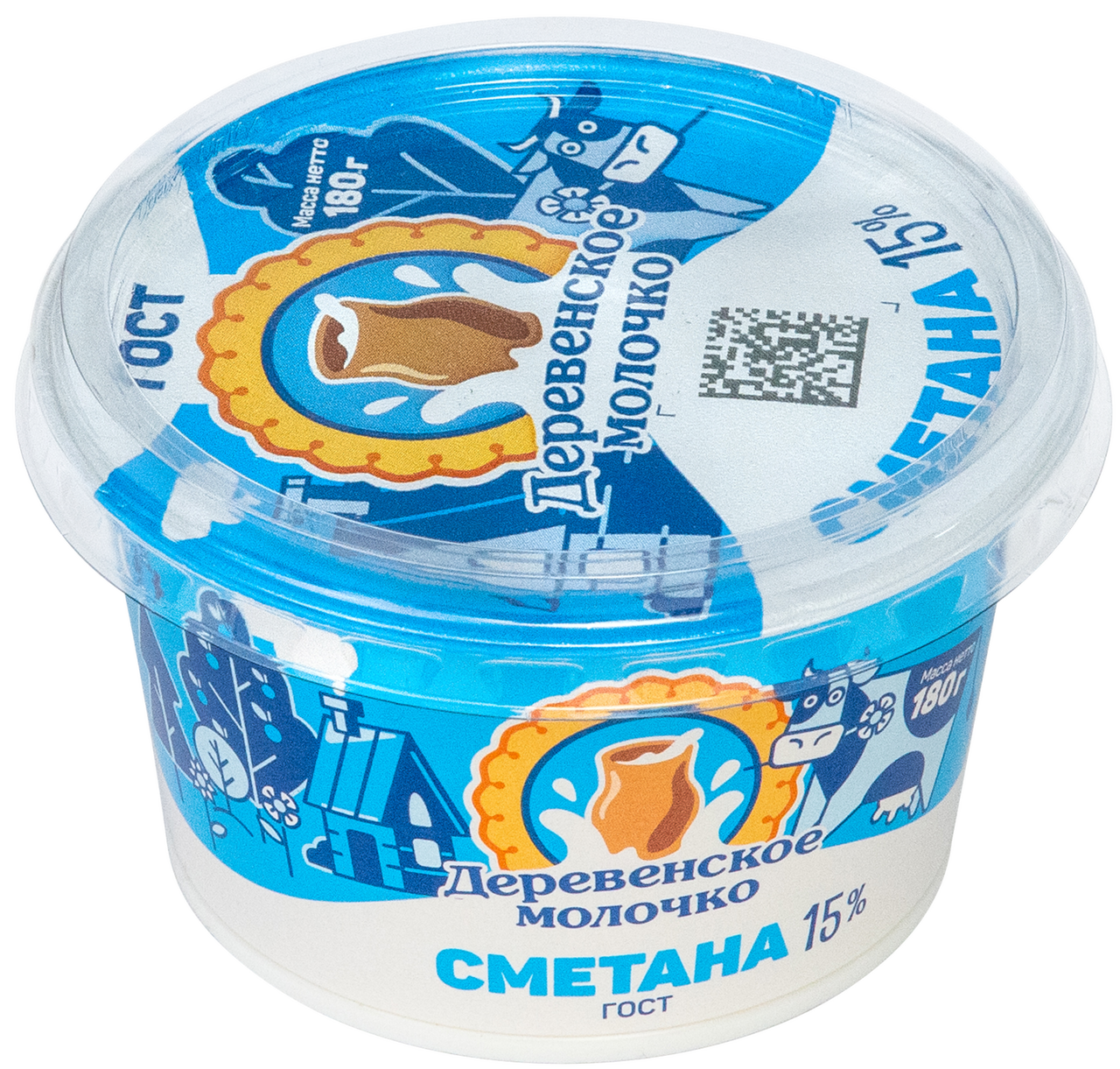 Сметана Деревенское молочко 15%, 180г производится по традиционной технологии. Выделяется натуральным сливочным вкусом и бархатной текстурой. Сметана не расслаивается, густой консистенции. Добавлять сметану можно в горячие блюда, готовить на ее основе соусы или крема для выпечки, заправлять салаты, добавлять в творог. В составе содержится большое количество кальция, железа, фосфора и витаминов С, Е, А, группы В, которые необходимы для нормальной работы организма. При регулярном употреблении сметаны стабилизируется работа желудочно-кишечного тракта, укрепляется иммунитет, улучшается состояние кожи, выводятся токсины из организма. За счет большого содержания кальция укрепляются костные и мышечные ткани, ускоряется процесс восстановления после физических упражнений.