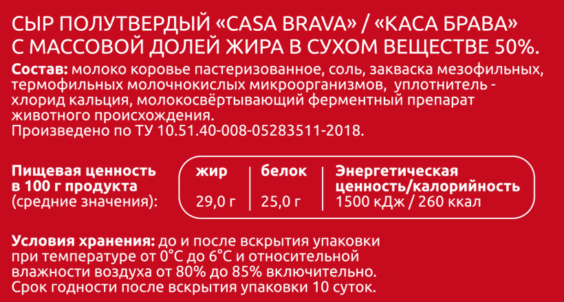 Сыр Кабош Casa Brava полутвердый 50%, 180г