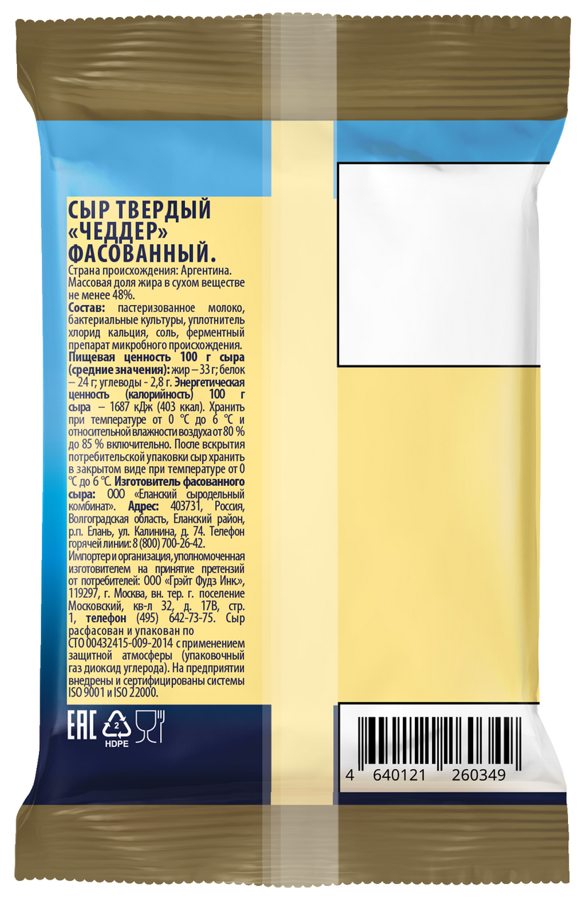 Сыр La Paulina Чеддер полутвердый 48%, 180г