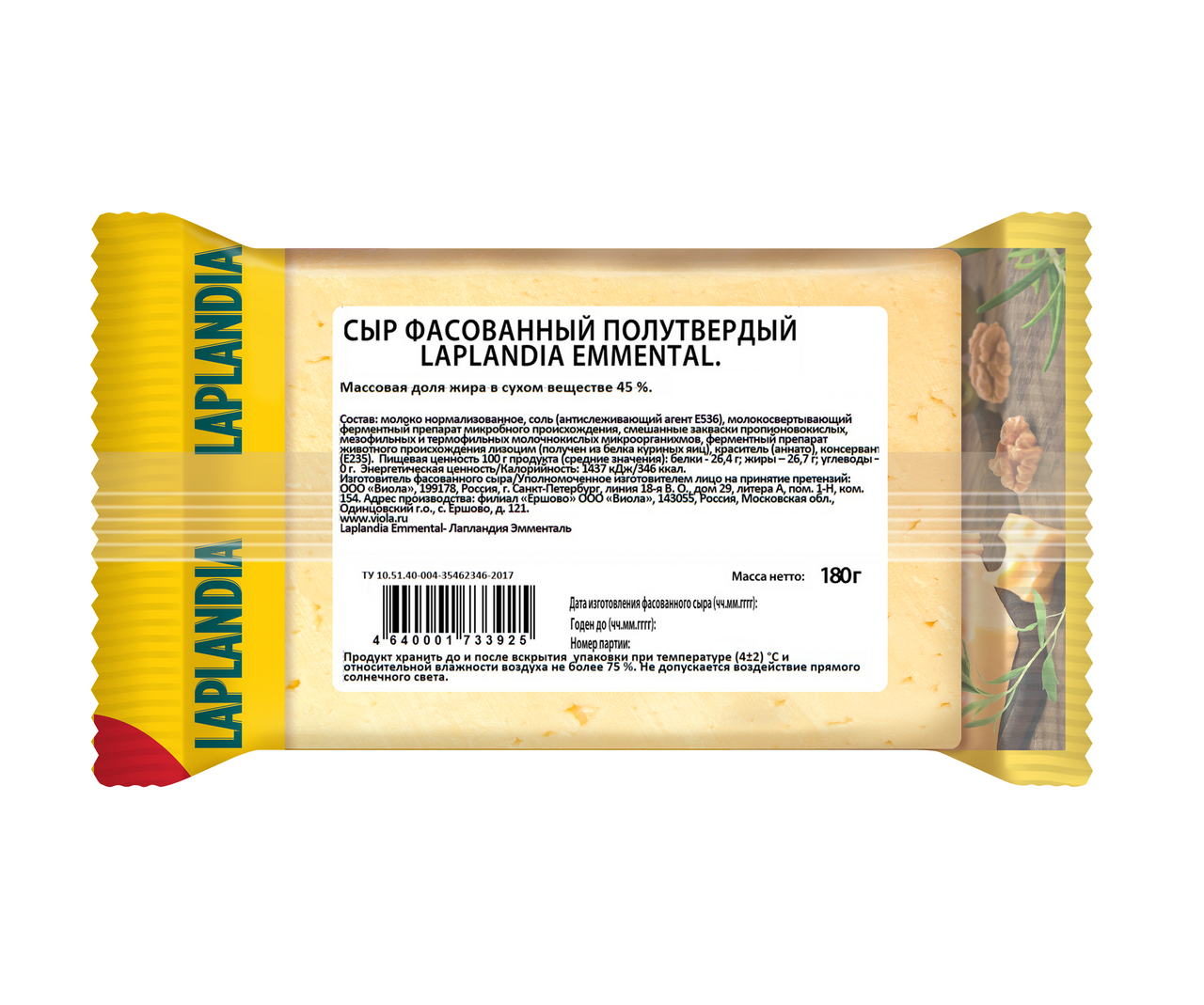 Сыр Laplandia Emmental полутвердый 45%, 180г