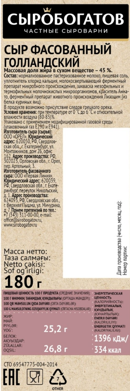Сыр Сыробогатов Голландский полутвердый 45%, 180г