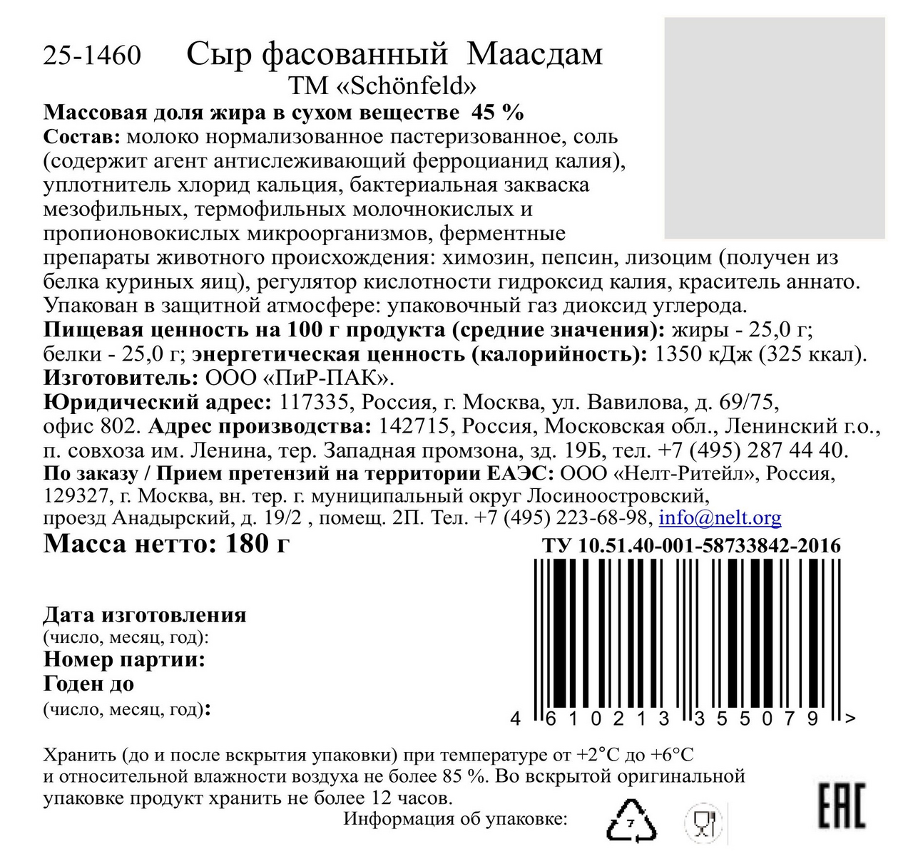 - Жирность, % 45
