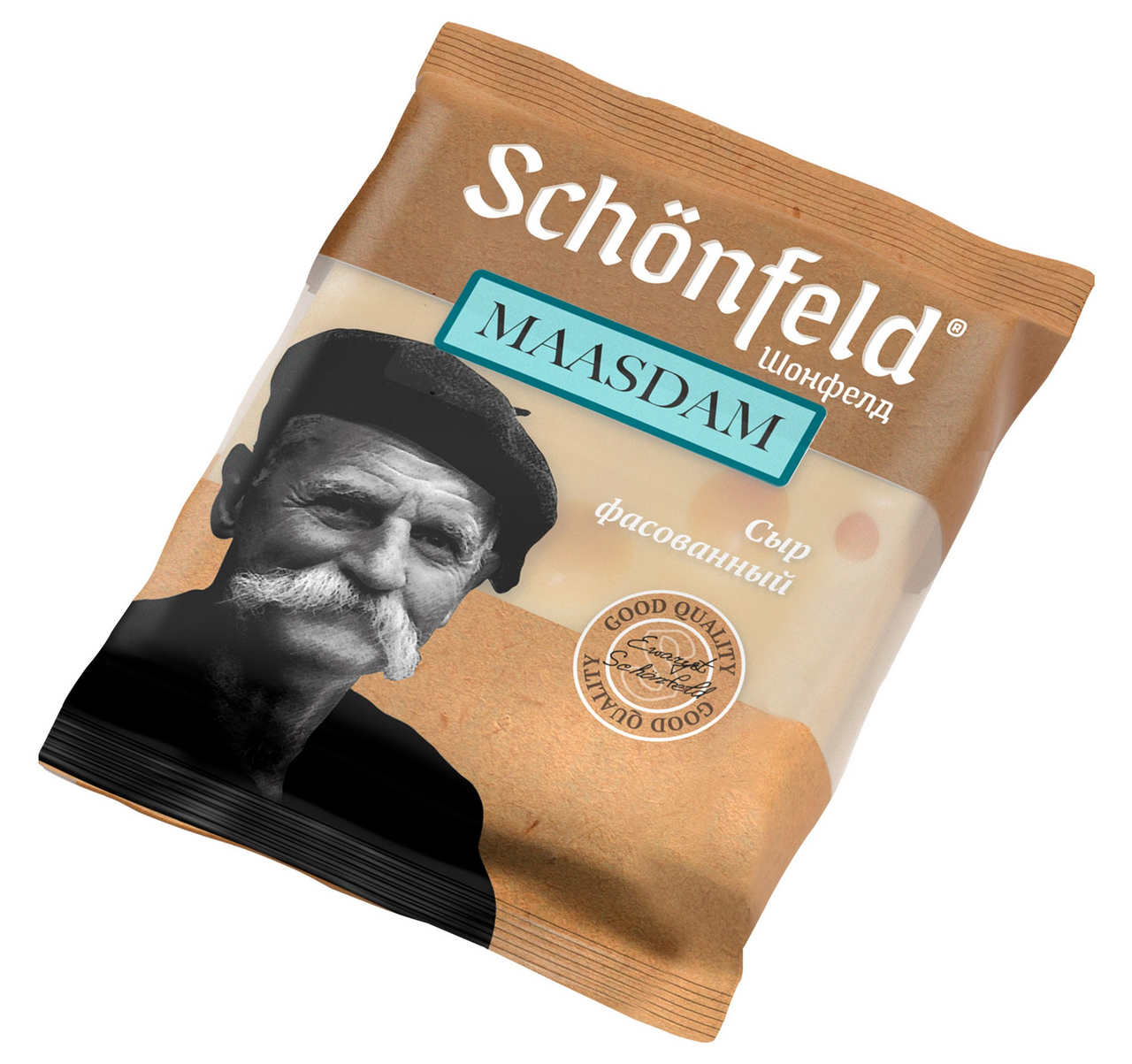 Сыр Маасдам Schonfeld обладает эластичной текстурой, имеет небольшие, размером с горошину, глазки. Отличается благородным сладковато-пикантным вкусом сливок с орехами. Этот полутвердый красавец с характерными крупными глазками словно хранит в себе секреты старинных голландских мастеров. Золотистая мякоть, насыщенная 45% жирностью, раскрывается богатым сливочным вкусом с тонкими ореховыми нотками и легкой сладостью. Этот благородный сыр станет звездой вашего стола, прекрасно дополнит сырную тарелку или превратится в изысканный ингредиент для кулинарных шедевров.