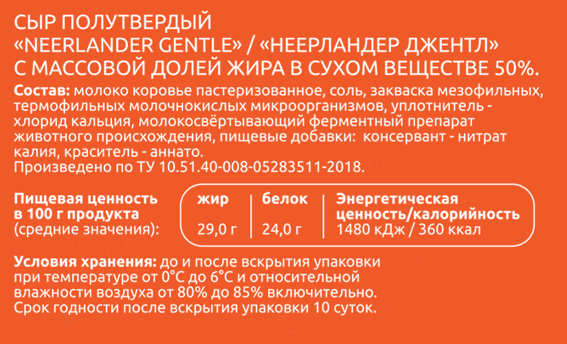 Сыр Кабош Neerlander Gentle кусок 50%, 180г