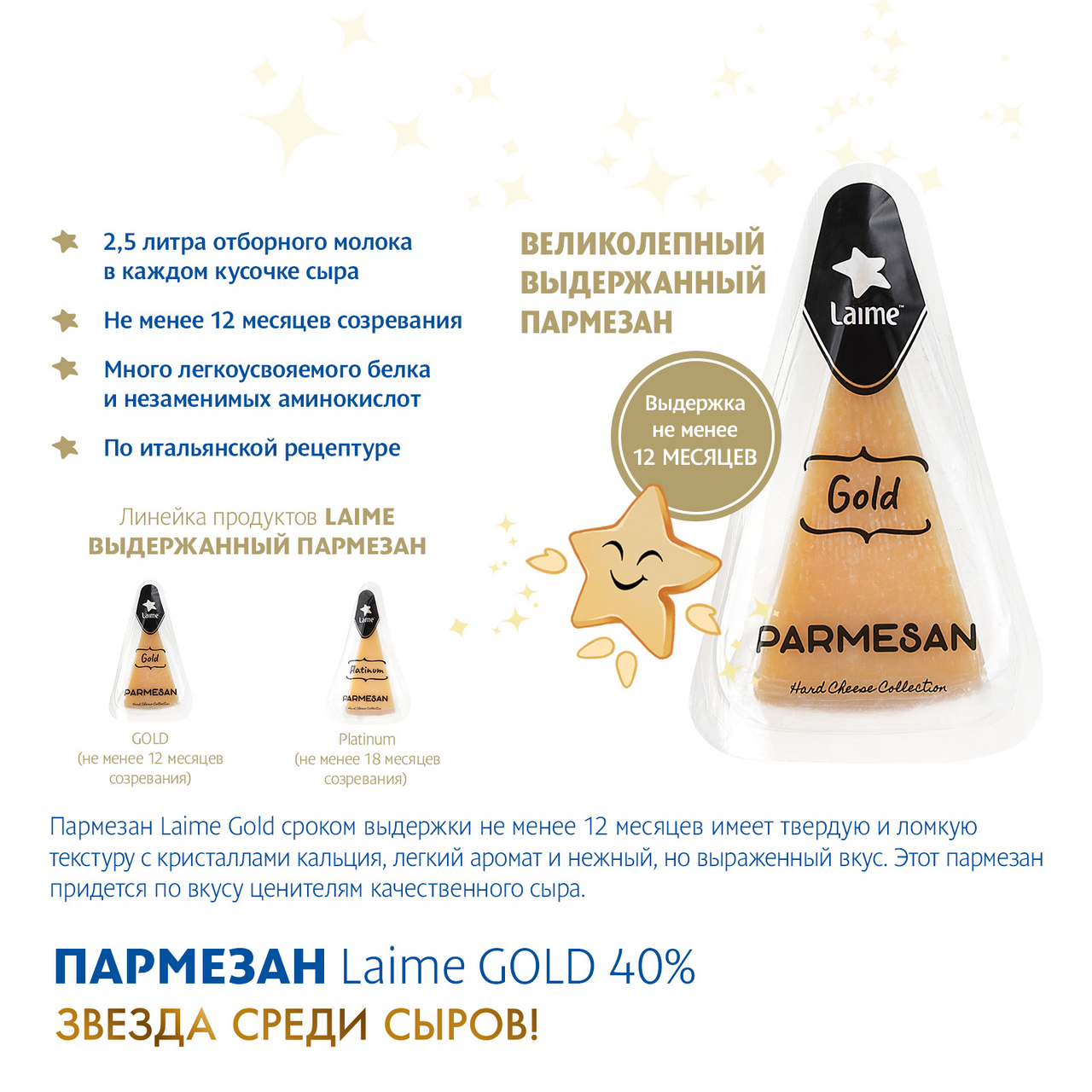 Сыр Laime Gold Пармезан 12 месяцев твердый 40%, 180г