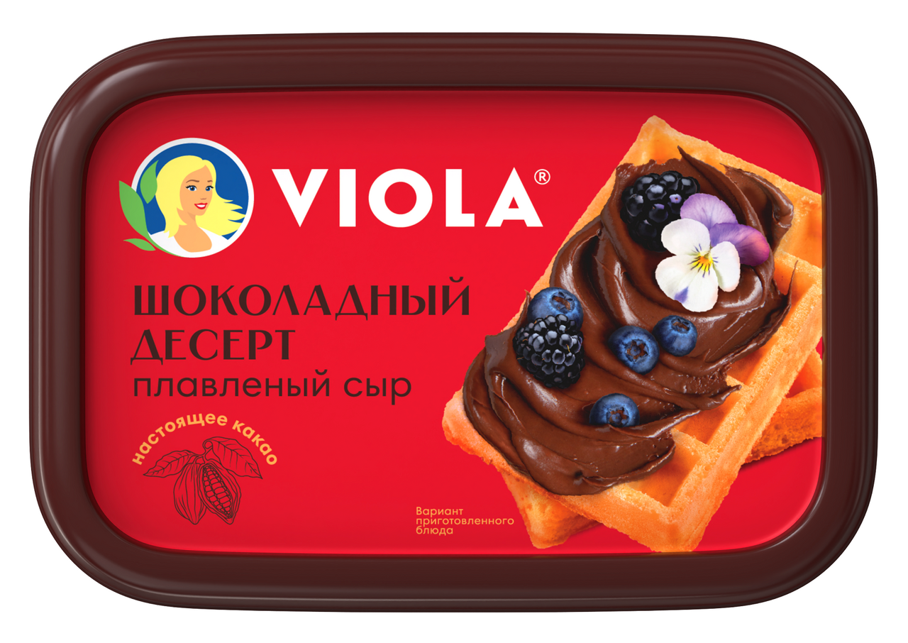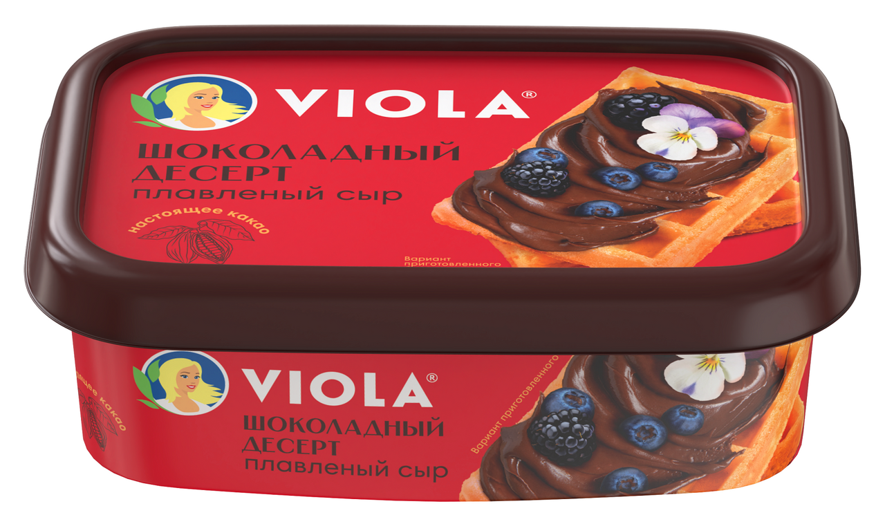 Это нежная, кремообразная консистенция, похожая на шоколадную пасту, но имеющая сбалансированный неприторный вкус темного шоколада и приятный состав (отсутствуют растительные масла и жиры, сахар в составе не на 1 месте, как у шоколадных паст). Плавленый сыр Viola делается только изкачественных ингредиентов посовременной технологии и рецептуре ГОСТ с соблюдением самых высоких стандартов качества от сырья до готового продукта. Производится из твердых и полутвёрдых сортов сыра, сливочного масла и ароматного какао, придающего продукту невероятный вкус и аромат великолепного десерта. Отличается нежной сливочной консистенцией, благодаря которой сыр с легкостью можно намазать на хрустящий крекер, ломтик хлеба или вовсе использовать в качестве соуса для блинчиков и вместо крема для торта.