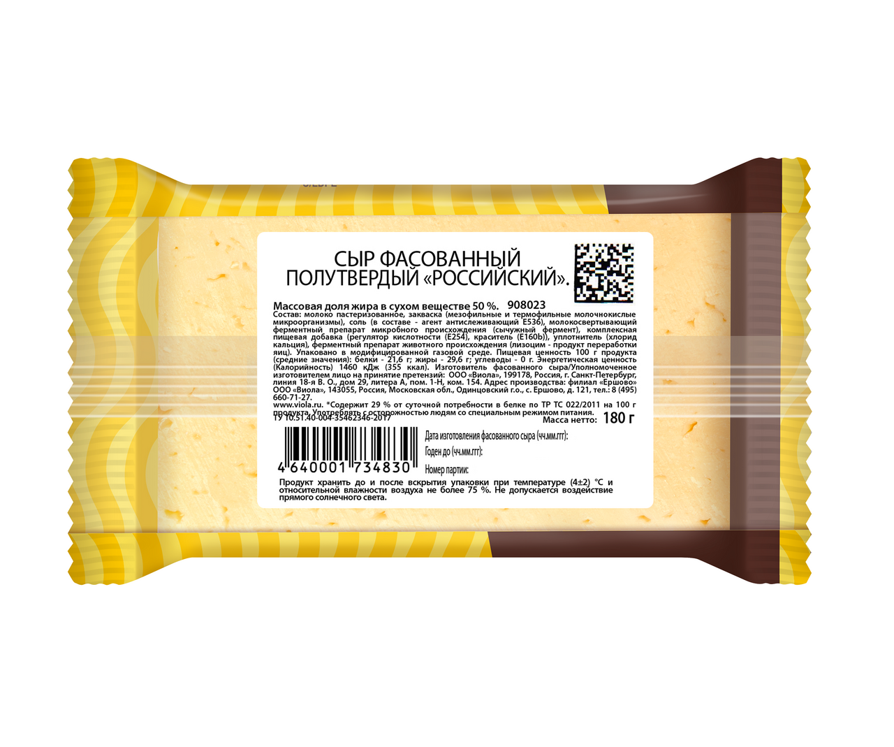 Молоко нормализованное пастеризованное, закваска мезофильных и термофильных молочнокислых микроорганизмов, соль (в составе – агент антислеживающий Е536), молокосвертывающий ферментный препарат животного происхождения, комплексная пищевая добавка (регулятор кислотности Е524, краситель Е160b), уплотнитель (Е509), ферментный препарат животного происхождения (лизоцим – продукт переработки яиц).