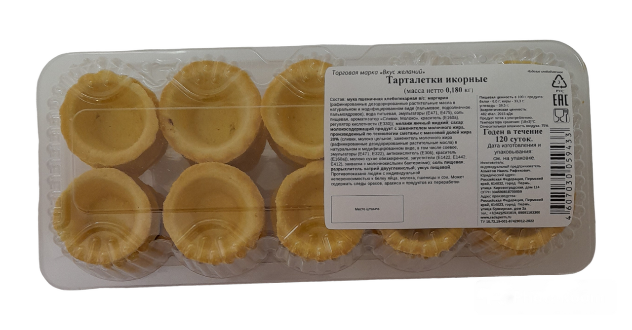 Тарталетки Вкус желаний икорные, 180г