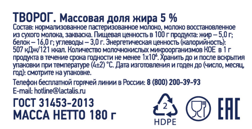 Нормализованное пастеризованное молоко, молоко восстановленное из сухого молока, закваска.