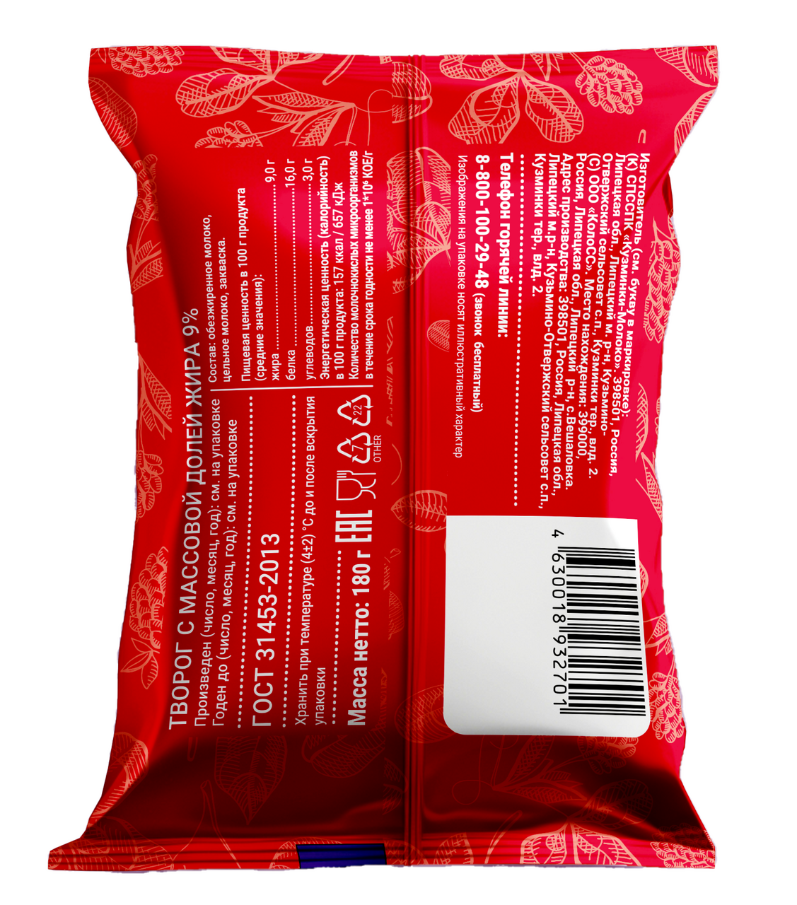 Творог Счастливое детство ГОСТ 9%, 180г