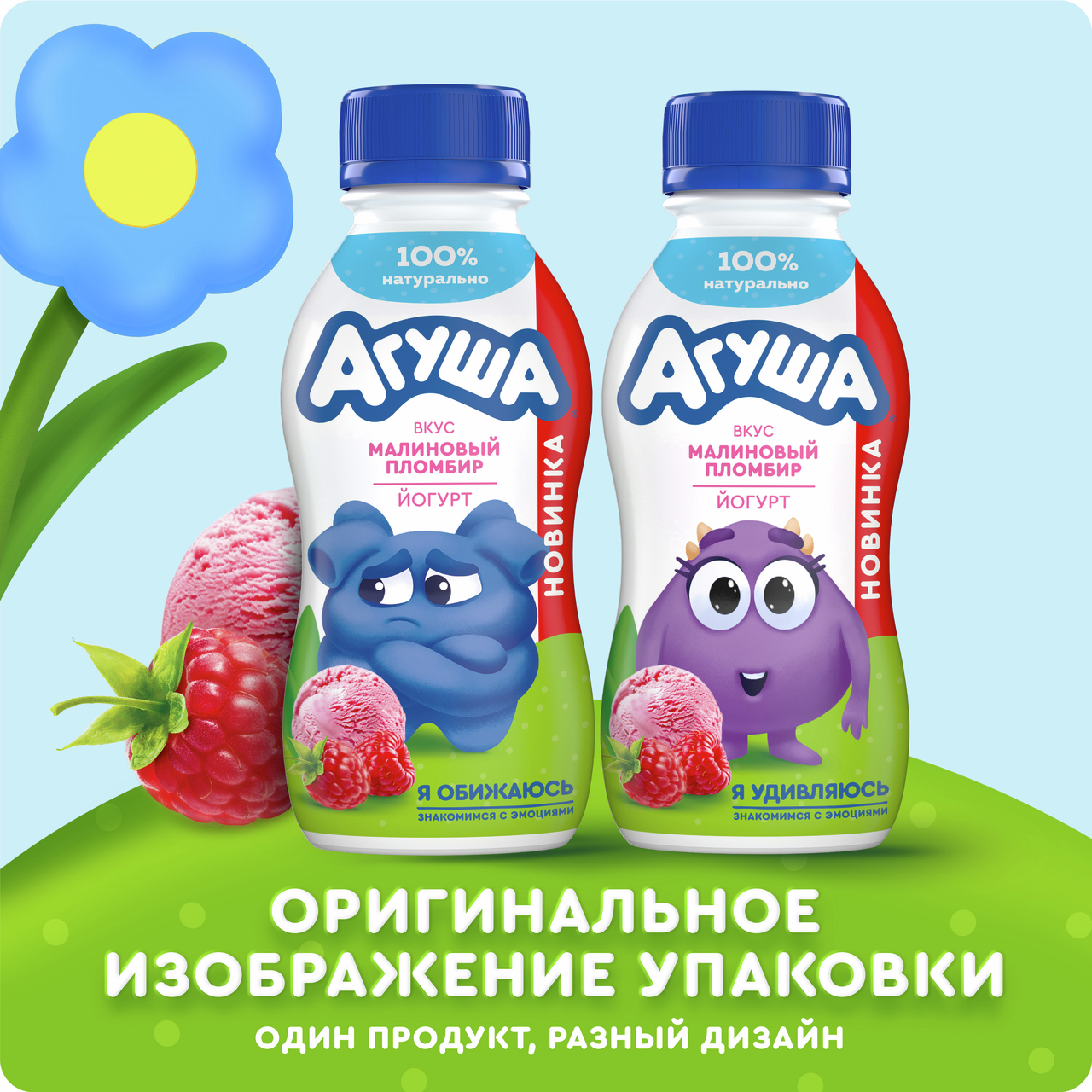 Йогурт питьевой Агуша малиновый пломбир 2.7%, 180г