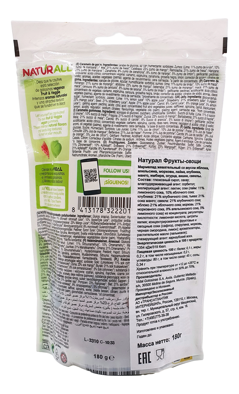 Мармелад жевательный Vidal Naturall фрукты-овощи, 180г