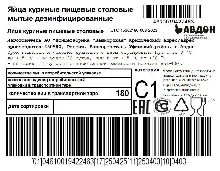 Яйцо куриное Ешь хорошее мытое С1, 180шт