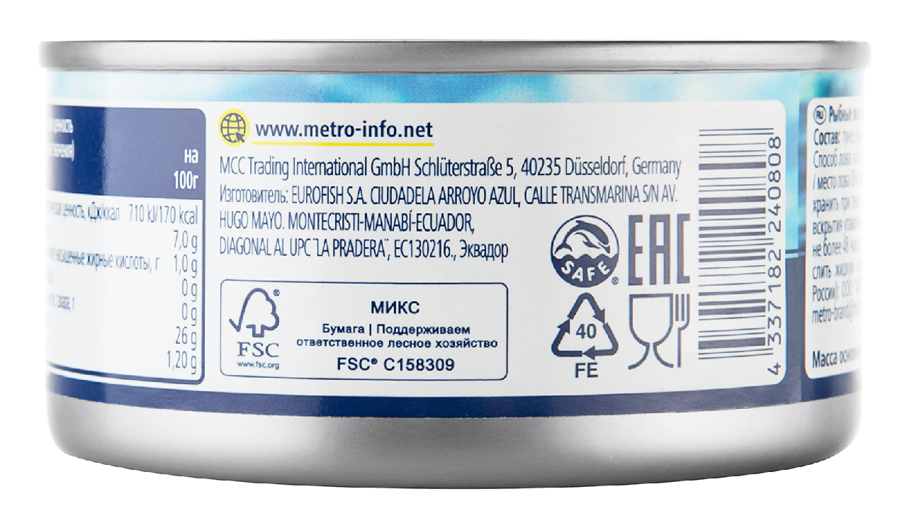 METRO Chef Тунец полосатый кусочки в оливковом масле, 185г