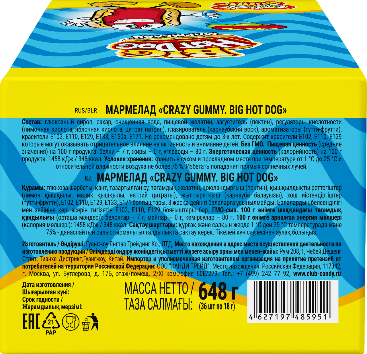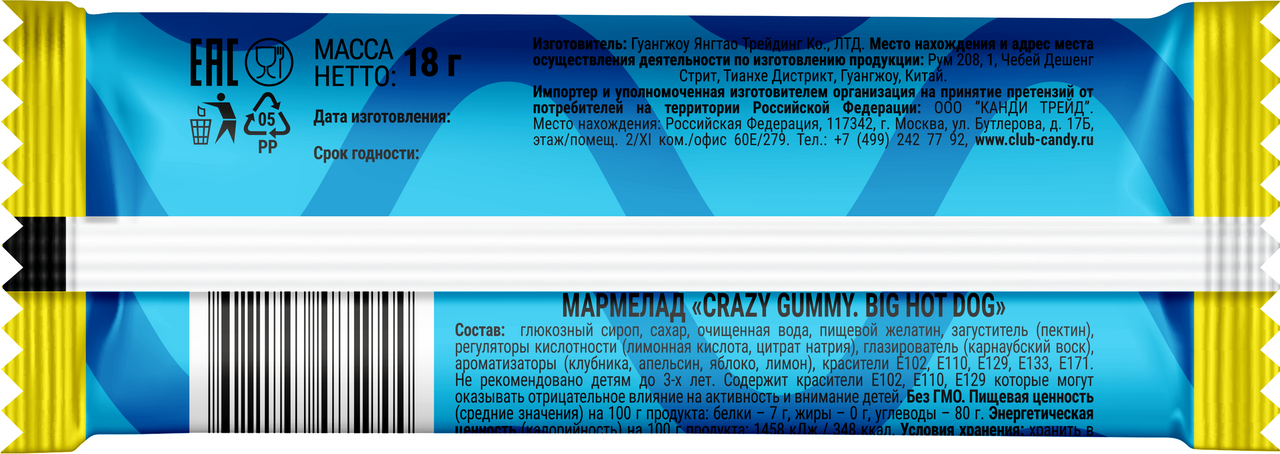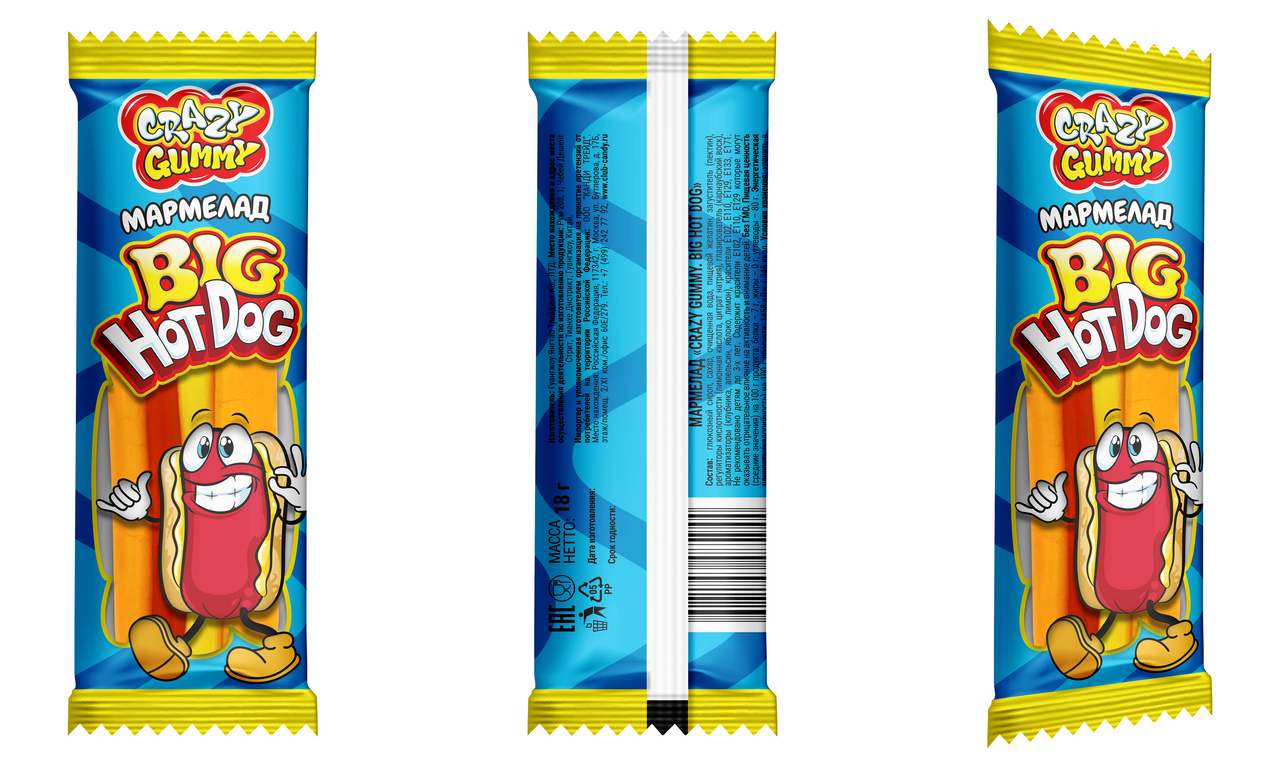 Мармелад Канди клаб Crazy Gummy Hot Dog, 18г