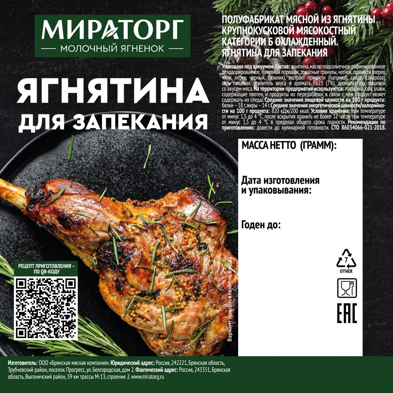 Ягнятина для запекания Мираторг охлажденная, ~1.3кг