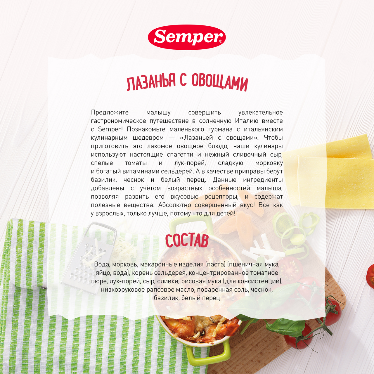 Пюре овощное детское Semper Лазанья с овощами с 18 месяцев, 190г