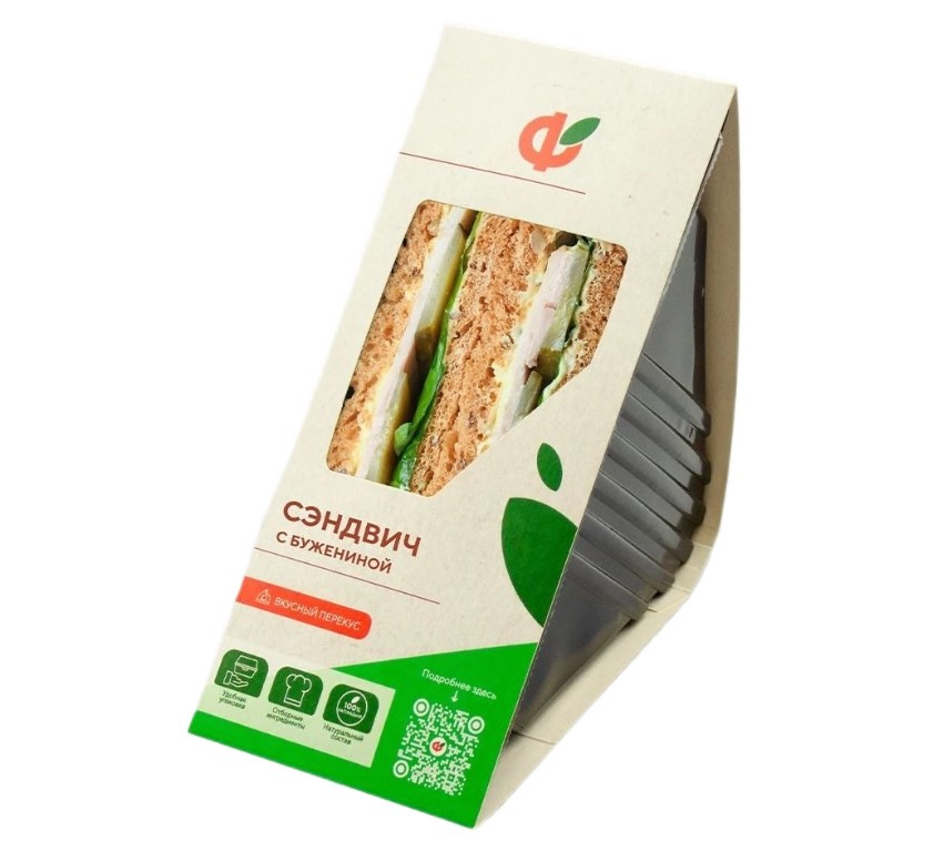 Сэндвич с бужениной от Фабрики здорового питания - идеальное сочетание ароматной домашней буженины, свежих хрустящих овощей и мягкого зернового хлеба. Мы сохранили традиционный рецепт, дополнив его современными стандартами качества: нежное мясо собственного приготовления, отборные сезонные овощи и свежую зелень, и зерновой хлеб. Приготовленный с вниманием к деталям, наш сэндвич получается сытным, но сохраняет идеальную гармонию вкусов. Подавайте его свежеприготовленным - это полноценный перекус, который зарядит энергией и подарит настоящее гастрономическое удовольствие.Натуральные ингредиенты и высокое содержание белка - в каждом кусочке этого аппетитного сэндвича сочетаются насыщенный вкус и питательная ценность. Отборная буженина как источник полноценного белка, свежие овощи, богатые витаминами, и цельнозерновой хлеб для длительного насыщения - всё, что нужно для вкусного и полезного перекуса в любое время дня.