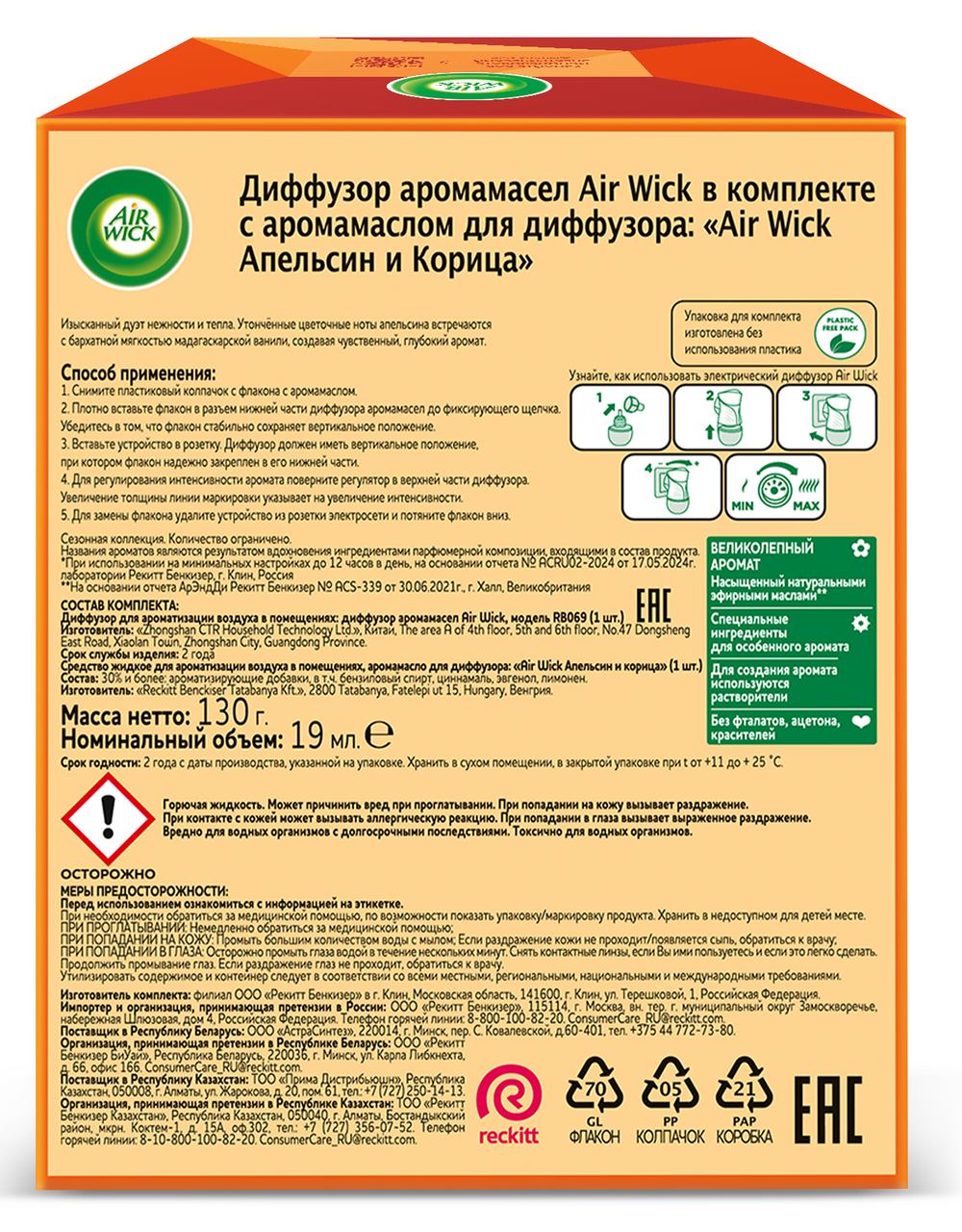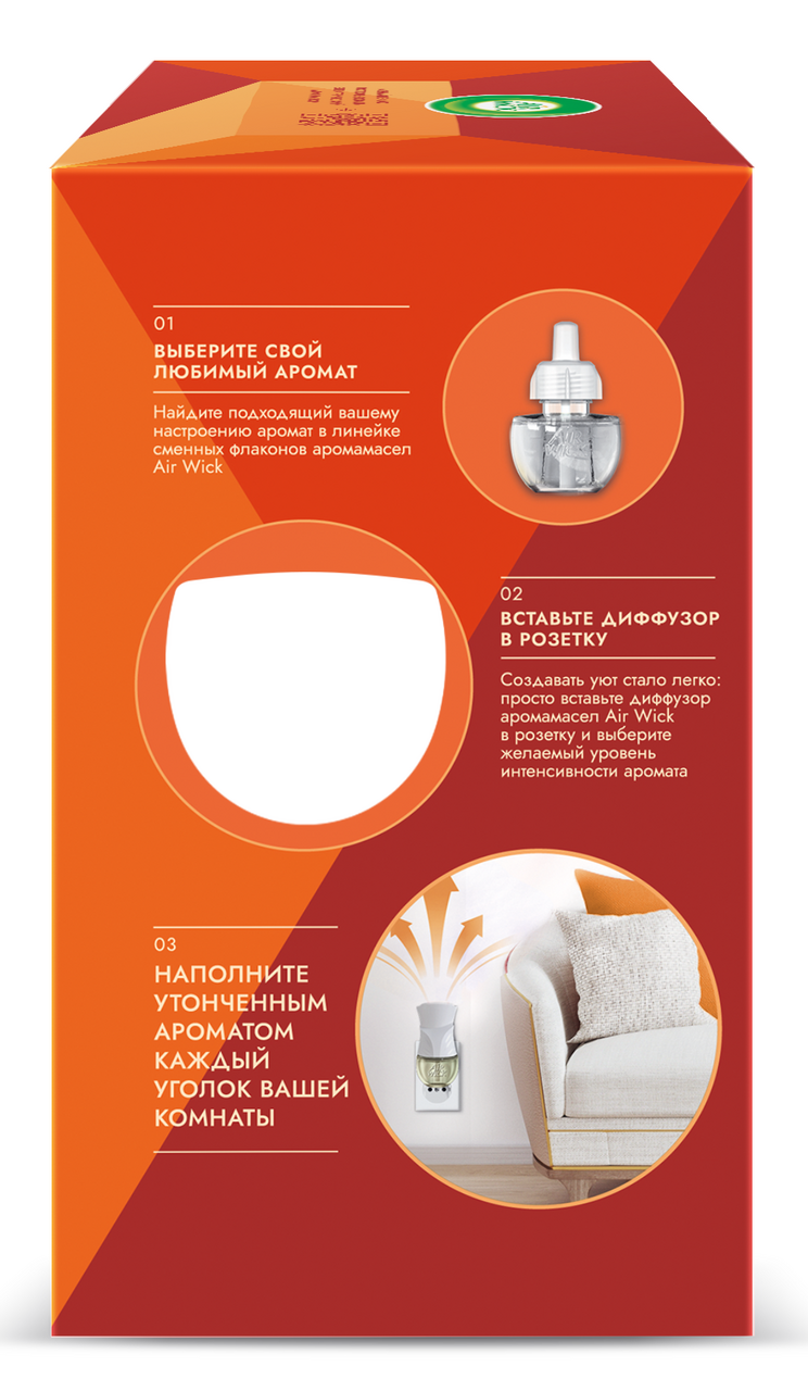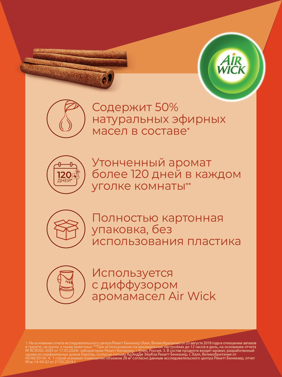Изысканный дуэт нежности и тепла. Утончённые цветочные ноты апельсина встречаются с бархатной мягкостью мадагаскарской ванили, создавая чувственный, глубокий аромат. Диффузор аромамасел Airwick наполнит Ваш дом ароматом, вдохновленным самой природой, который длится день за днем. Ощутите теплый аромат апельсина и корицы у себя дома вместе с Air Wick.