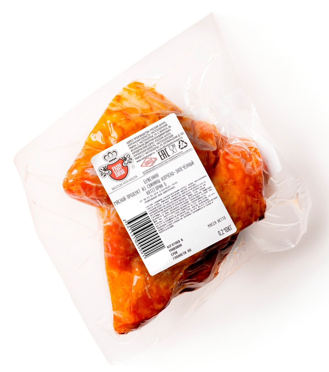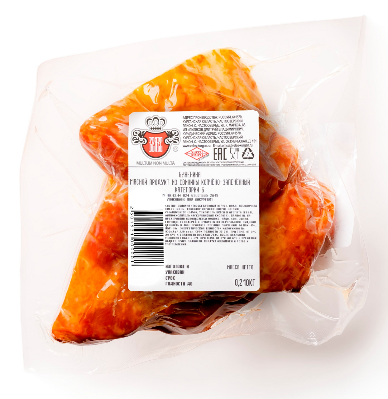 Копчено-запеченная буженина Велес – универсальный деликатес высокого качества. Подходит для праздничного стола и для повседневного меню.