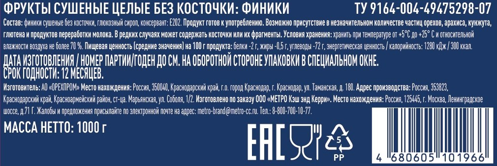 METRO Chef Финики сушеные без косточки, 1кг