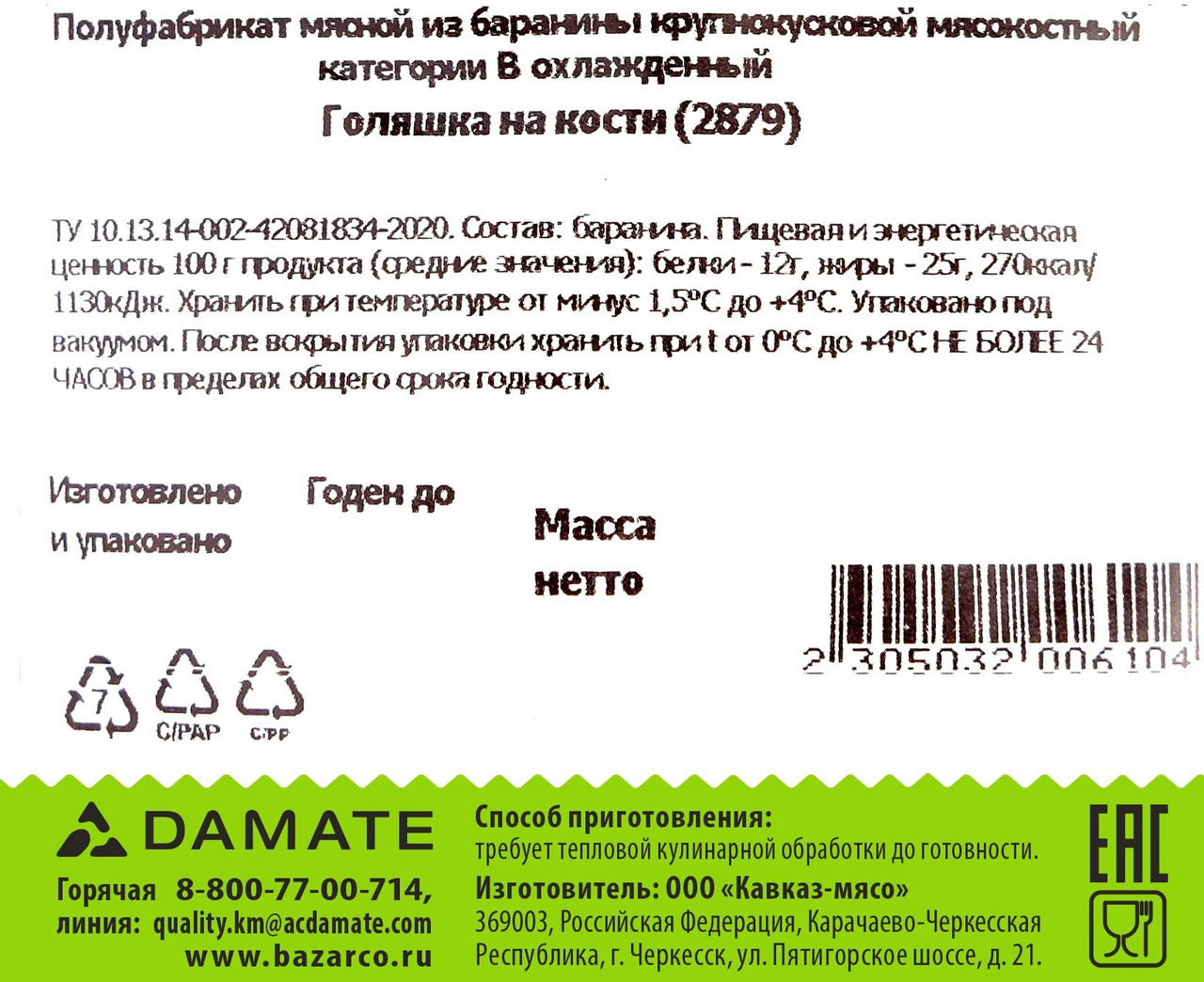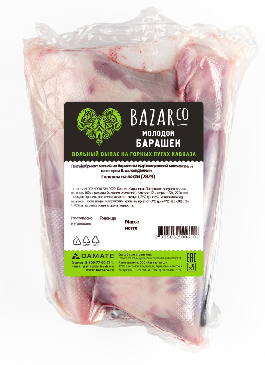 Голяшка баранья Bazarco Халяль на кости охлажденная, ~1кг