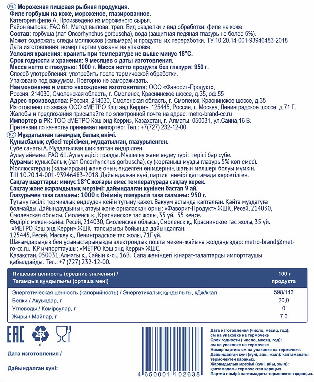 Горбуша, вода (защитная ледяная глазурь не более 5%).