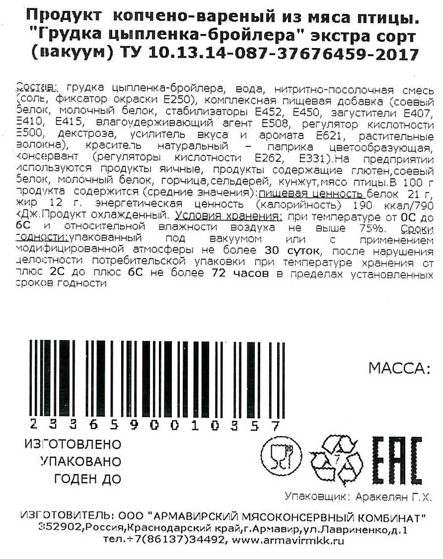 - Тип упаковки Вакуумная упаковка