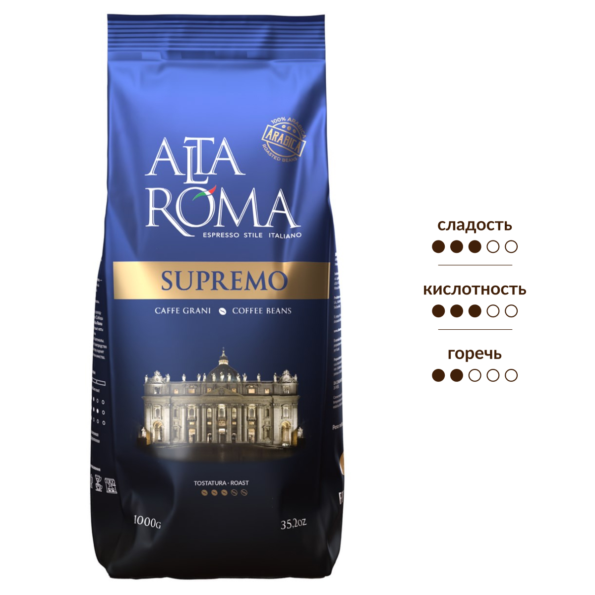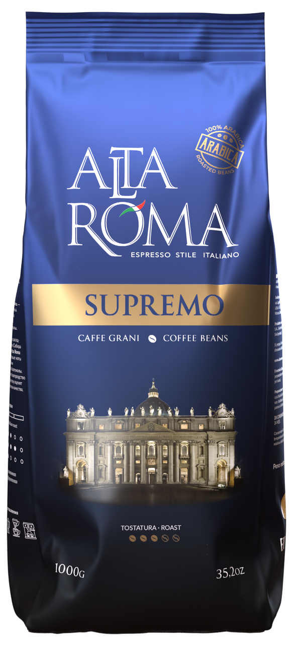 Свежеобжаренный кофе, произведенный по традиционным итальянским рецептурам обжарки. Лучшее сочетание цен и европейского качества. Гарантированная стабильность вкуса, благодаря собственному технологичному полностью автоматизированному производству.В эклектике Alta Roma Supremo гармонируют фруктовые ноты и богатый аромат. Легкая кислинка подчеркивает благородство зерен: этот кофе по достоинству оценят настоящие гурманы и ценители качества.