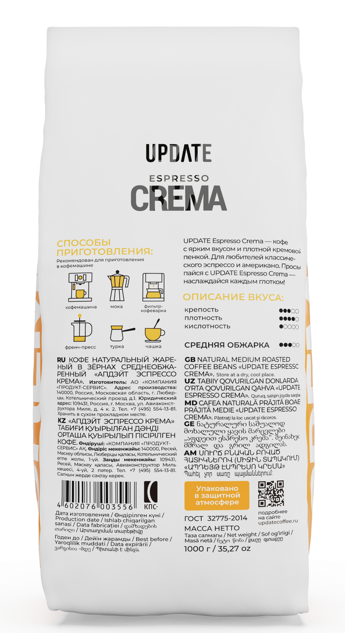 Кофе Update Espresso Crema зерновой, 1кг