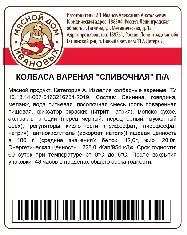 Колбаса МД Ивановых Сливочная вареная, ~1кг